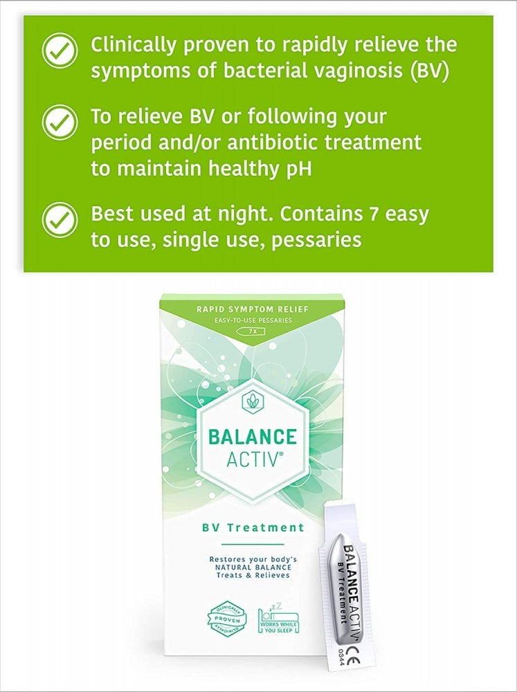 Balance Activ BV Pessaries is a treatment for bacterial vaginosis (BV) that helps ease the symptoms.