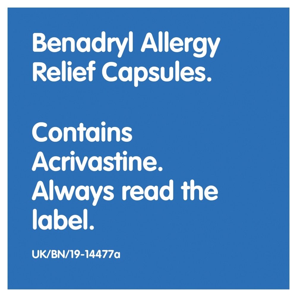 Benadryl Allergy Relief capsules are a treatment for allergy and hay fever symptoms. They can help to prevent symptoms like sneezing, watery itchy eyes, and a blocked or runny nose. If you’re suffering with irritating allergy symptoms, especially over the spring and summer months, Benadryl could be the perfect way for you to relieve and prevent those symptoms.