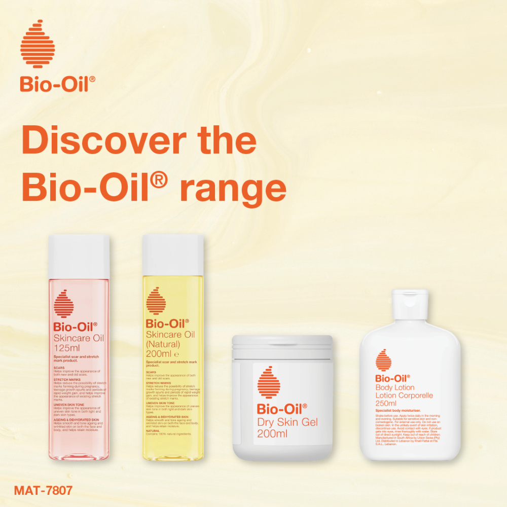 Bio-Oil Natural Skincare Oil is made from naturally derived ingredients and is clinically proven to help improve the appearance of scars, stretch marks and even wrinkles. This unique formulation contains 14 natural oils that easily absorb into the skin.