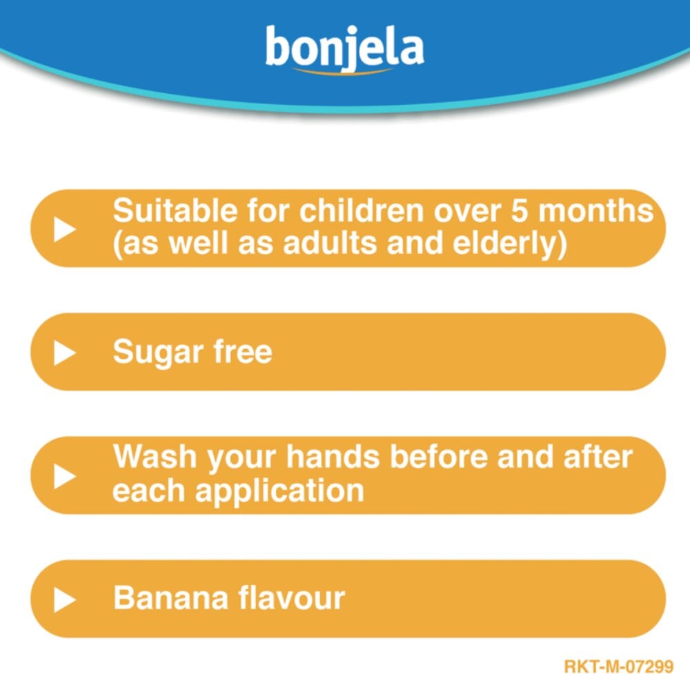 Bonjela Junior Gel is a mouth ulcer treatment that helps to reduce discomfort caused by mouth ulcers. Its gentle formula is safe for use in children over the age of 5 months and is sugar free. It helps to reduce inflammation and fight infection whilst easing pain. The gel is sugar-free and almost colourless with a tasty banana flavour, so is easy and pleasant to administer to children. As well as reducing pain, Bonjela can help to ease the healing process and protect from infection. If you’re looking for easy and effective pain relief from mouth ulcers for your child, try Bonjela Junior.