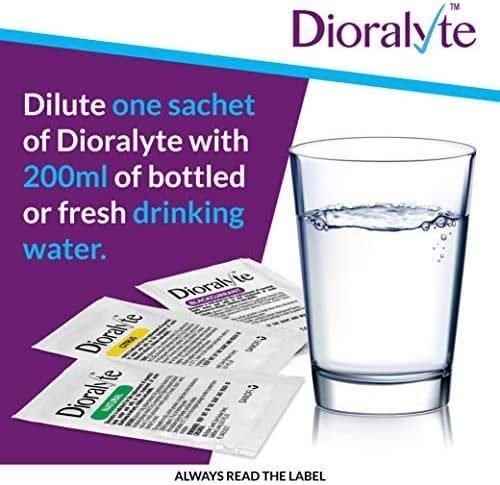 To use Dioralyte Sachets, just empty one sachet into a 200ml glass of water and stir until powder dissolves. Drink after every loose stool. If you are treating children, one sachet in 200ml of water will be enough, but some adults may find that 2 sachets dissolved in 400ml of water will be needed. Always use fresh drinking water with Dioralyte Sachets, do not dissolve the powder in anything else.