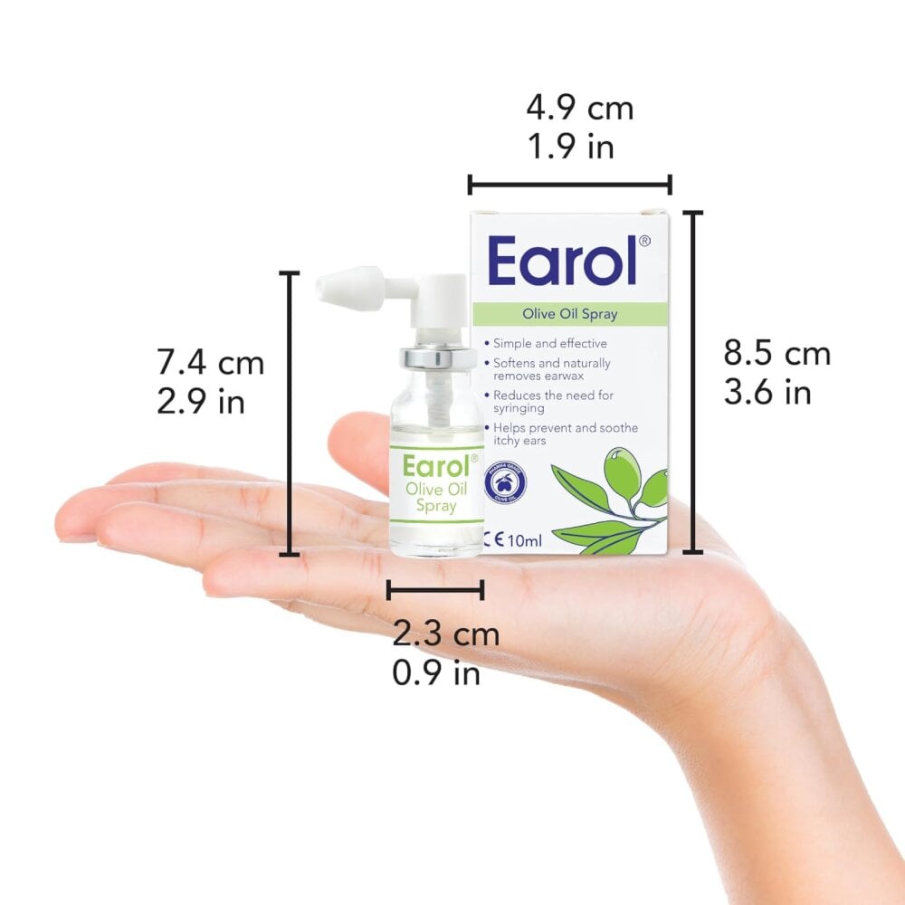 Earol Olive Oil Spray is a natural remedy for waxy build-up in your ears. If you suffer from ears that are blocked by earwax, Earol Olive Oil Spray can help to soften ear wax for easy removal. The spray bottle makes this product easier than ever to apply and is perfect for those preparing for an ear wax removal appointment with their doctor or nurse.