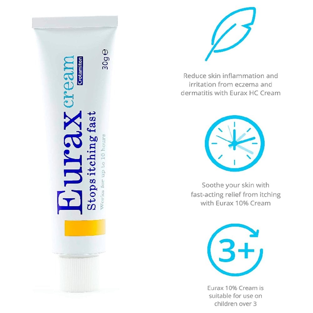 Eurax Cream is not suitable for use by children under the age of 3 unless specifically recommended by a doctor. Do not use this product if you are allergic to Crotamiton or any of the other listed ingredients. Do not use this cream in or around the eyes, on broken skin, inflamed skin, open wounds, or on weeping skin conditions. If you are suffering with genital itching, only use this product under the direction of your doctor.