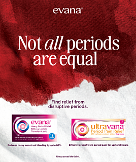 Evana Heavy Period Relief helps to break the cycle of heavy, disruptive periods. The medication can reduce heavy bleeding by up to 60%.