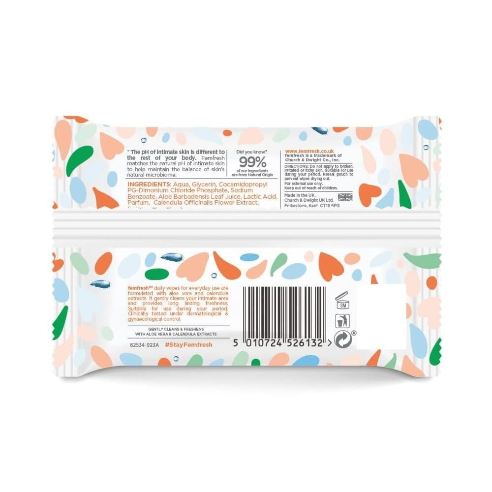 Femfresh Intimate Hygiene Feminine Freshness Wipes are intimate wipes that contain a pH-balanced formula to gently cleanse, freshen and deodorise. The wipes will leave you with a long-lasting fresh feeling.