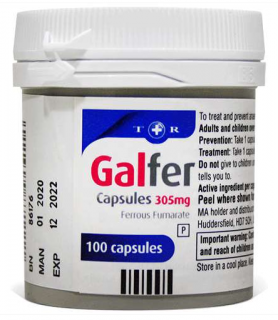 Galfer 305mg capsules can help to treat and prevent iron deficiency anaemia. They contain the active ingredient ferrous fumarate which is a form of iron that can be found in food and helps to maintain the normal development of red blood cells. Each capsule contains 305mg of the active ingredient and each pack contains 100 capsules. This product should be used under medical supervision. Speak to a Chemist4U pharmacist to find out if this product is suitable for you.