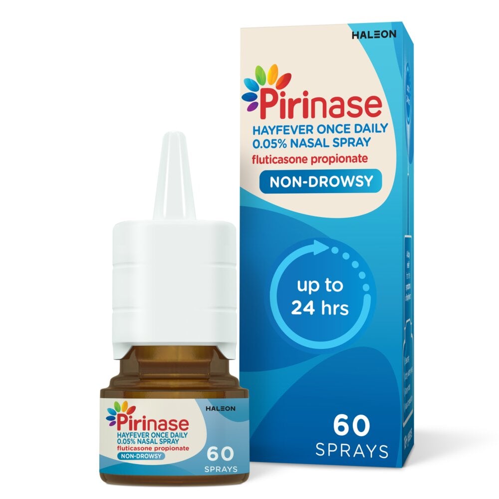 Pirinase Hay Fever Nasal Spray is a treatment for hay fever and allergy symptoms, helping you to feel more comfortable for up to 24 hours. It’s ideal for clearing a blocked or runny nose and easing sneezing, coughs, itchy and watery eyes, and other annoying hay fever symptoms. If you’re looking for an easy, once-daily treatment for hay fever or allergy symptoms, Pirinase could be the perfect product for you.