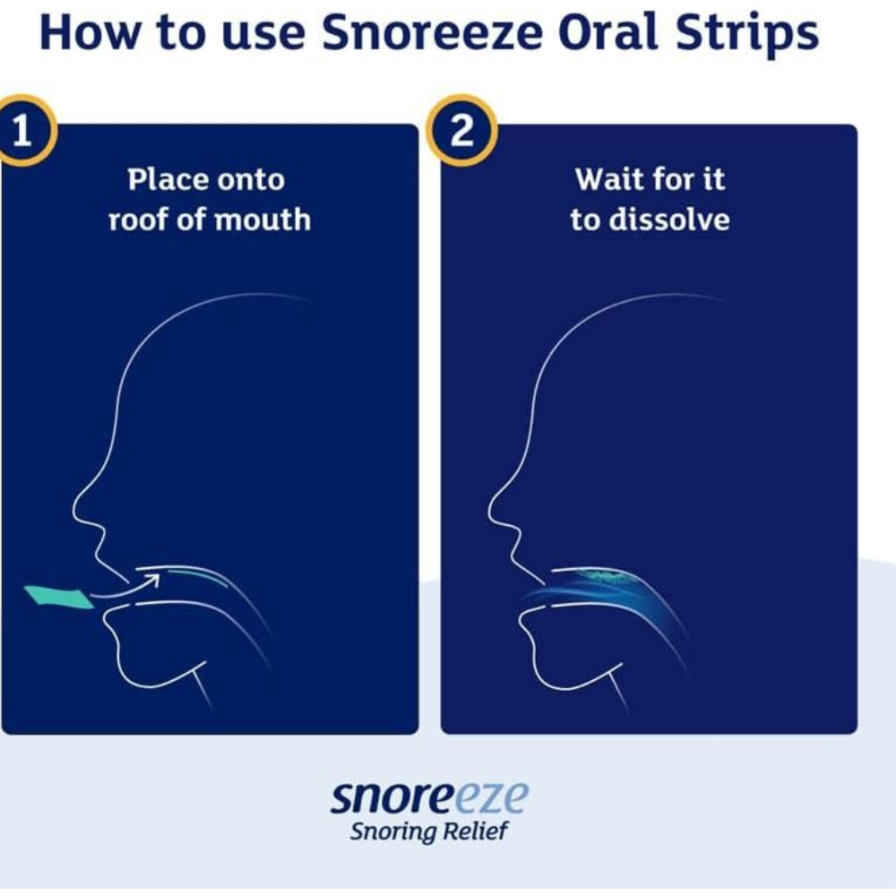 Do not use this product if you are allergic to any of the listed ingredients. If you are pregnant or breastfeeding, speak to your doctor or pharmacist before using Snoreeze Oral Strips. Snoreeze Oral Strips are not a cure for sleep apnoea. If you experience any side effects while using Snoreeze Oral Strips, speak to your doctor or pharmacist right away.