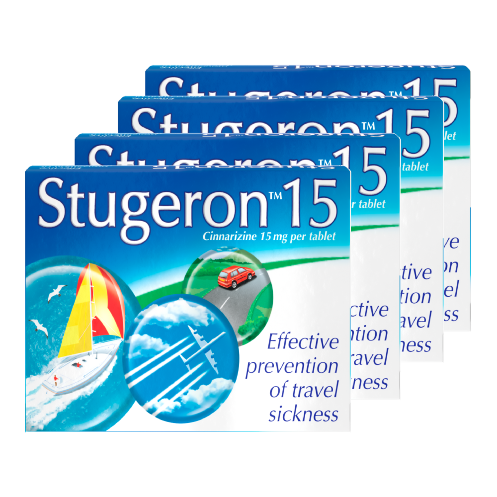 Stugeron 15mg (Cinnarizine) Travel Sickness - 15 Tablets - 4 Packs