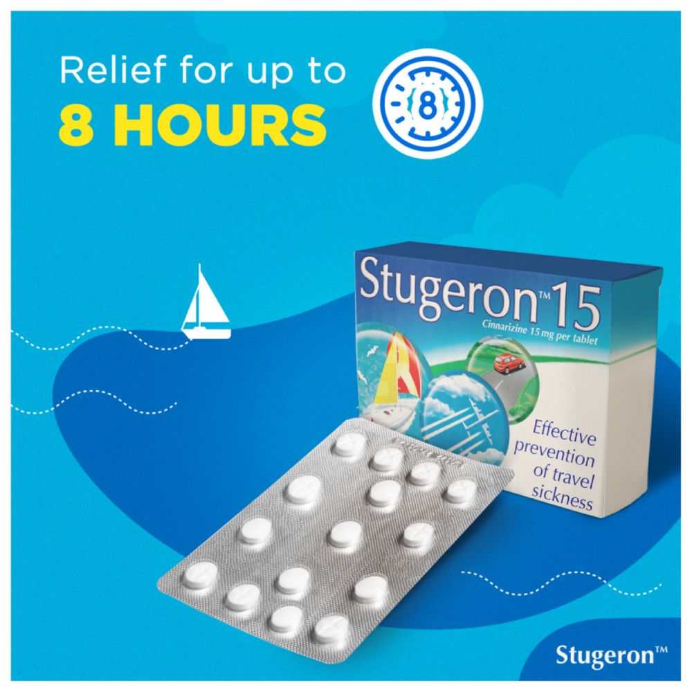Stugeron 15mg (Cinnarizine) Tablets are an effective remedy for nausea and other symptoms caused by travel sickness.
