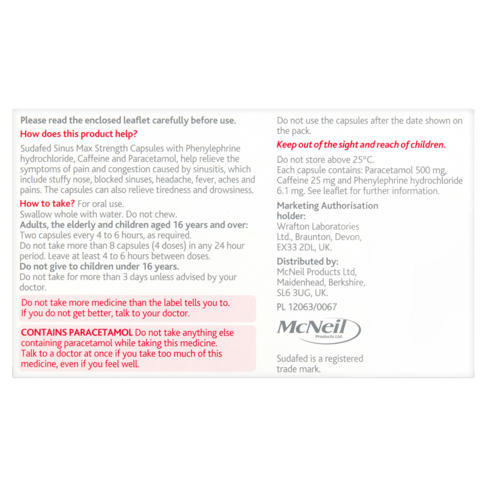 Sudafed Sinus Max Strength - 16 Capsules