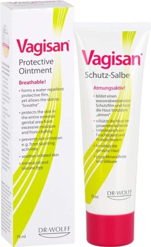 Vagisan Protective Ointment provides a waterproof, breathable barrier to protect against anything that may harm the delicate skin around the outside of the vagina, like vaginal discharge, sweat and urine. The ointment also helps to soothe irritated skin caused by chafing and friction. Vagisan Protective Ointment is free from silicone and mineral oils.